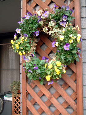 今の時期は やっと大きくなったパンジーの植え付けとハンギング作りをしています。